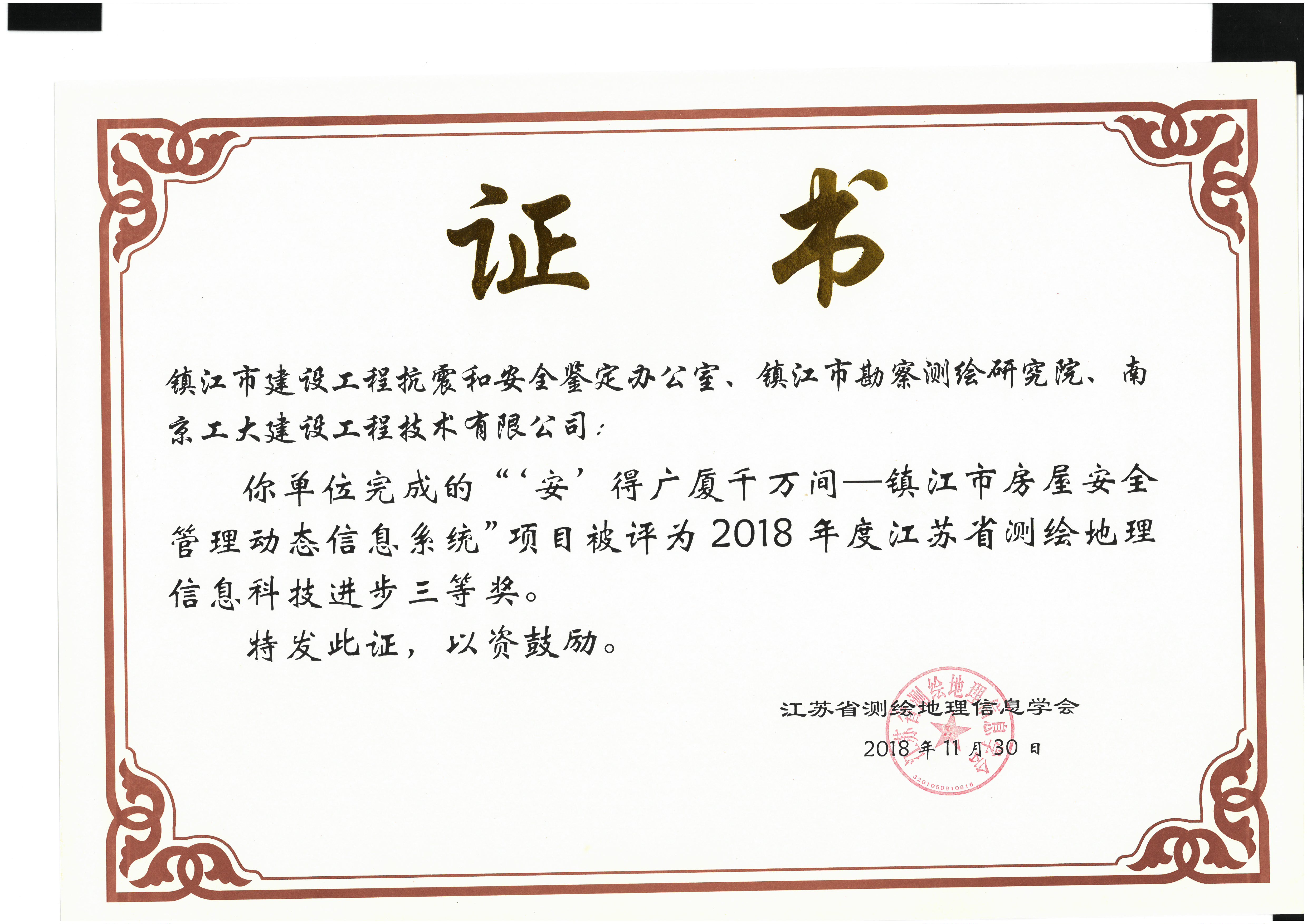 江蘇省測(cè)繪地理信息科技進(jìn)步三等獎(jiǎng)